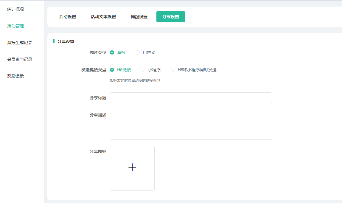设置活动分享的标题、描述、图标