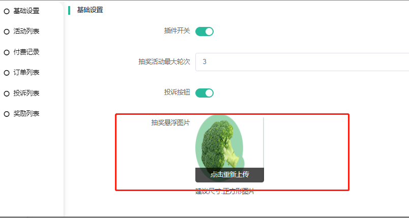 4) 活动图片:用于前端抽奖活动列表显示,建议尺寸345*150