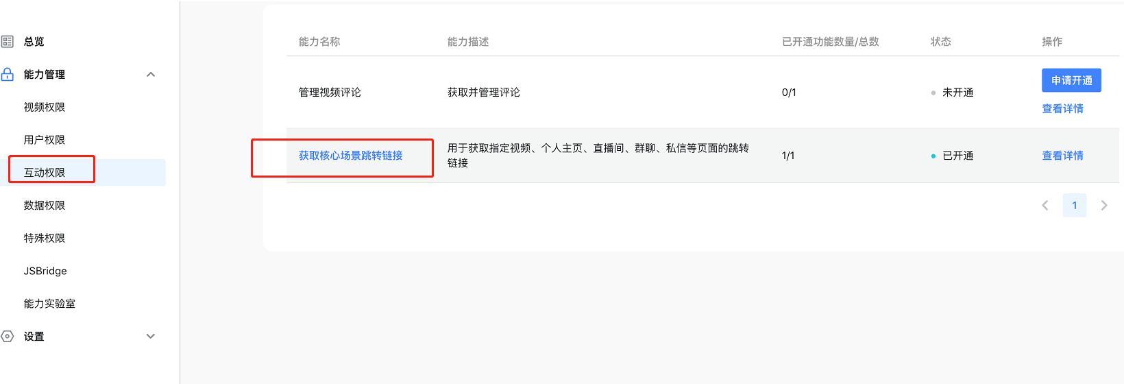 (需要用什么就对应开通即可,没有使用到的可以不用开通,比如视频分享页面需分享到抖音的,那么视频权限就需要开通)